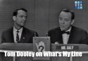 Chapter Five: Later that same year he was on What’s My Line, November 22, 1959. What’s My Line is the second longest running show of it type in TV history. At this point he is now known as “The Splendid American,” “Dr America,” and “Bac My Sy,” as well as Dr Tom Dooley.